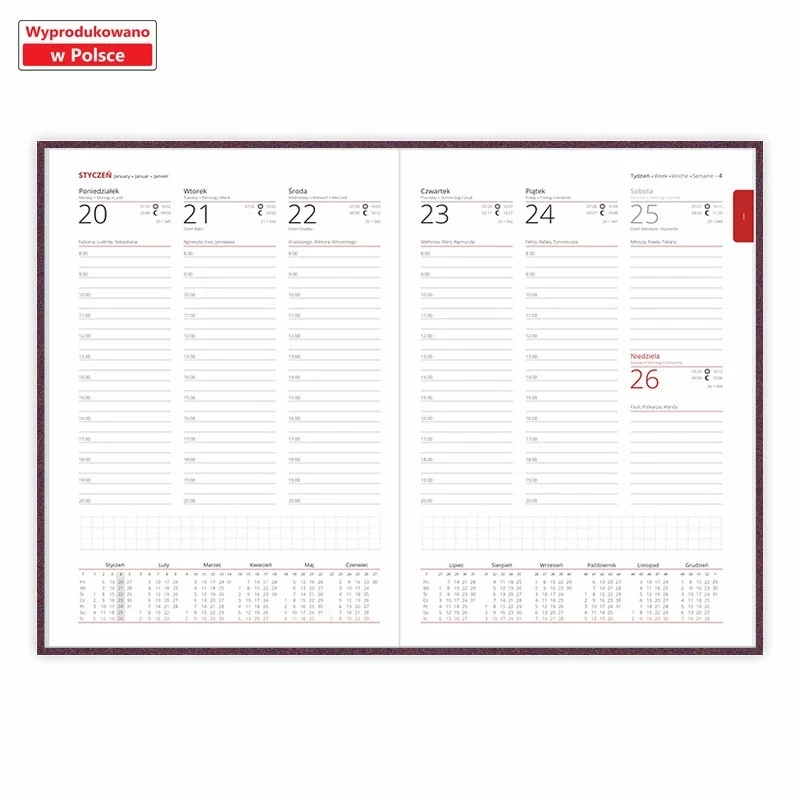 Kalendarz książkowy B6 - Rozkład Dzienny